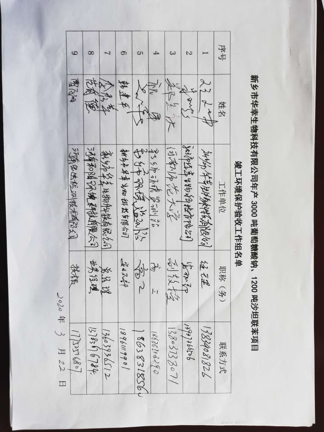 依據(jù)國務(wù)院第682號文頒布的新《建設(shè)項目環(huán)境保護(hù)管理條例》和原環(huán)境保護(hù)部國環(huán)規(guī)環(huán)評[2017]4號文公告的《建設(shè)項目竣工環(huán)境保護(hù)驗收暫行辦法》的相關(guān)要求,新鄉(xiāng)市華幸生物科技有限公司于2020年1月20日在新鄉(xiāng)市華幸生物科技有限公司廠區(qū)召開會議,對新鄉(xiāng)市華幸生物科技有限公司年產(chǎn)30000噸葡萄糖酸鈉、1200噸沙坦聯(lián)苯項目進(jìn)行竣工環(huán)境保護(hù)驗收。會議成立了驗收工作組,成員由建設(shè)單位新鄉(xiāng)市華幸生物科技有限公司、驗收檢測單位河南和陽環(huán)境科技有限公司、河南宏達(dá)檢測技術(shù)有限公司的代表及邀請的技術(shù)**組成(驗收工作組名單附后)。會前,驗收工作組成員對工程主要生產(chǎn)設(shè)施、環(huán)保設(shè)施進(jìn)行了現(xiàn)場檢查,會議聽取了建設(shè)單位關(guān)于項目建設(shè)情況及竣工環(huán)保工作的情況介紹、竣工環(huán)保驗收監(jiān)測報告編制單位關(guān)于驗收監(jiān)測工作技術(shù)匯報,查閱了竣工環(huán)保驗收監(jiān)測報告,核實(shí)了有關(guān)資料。經(jīng)過認(rèn)真審議與討論,形成如下驗收意見: